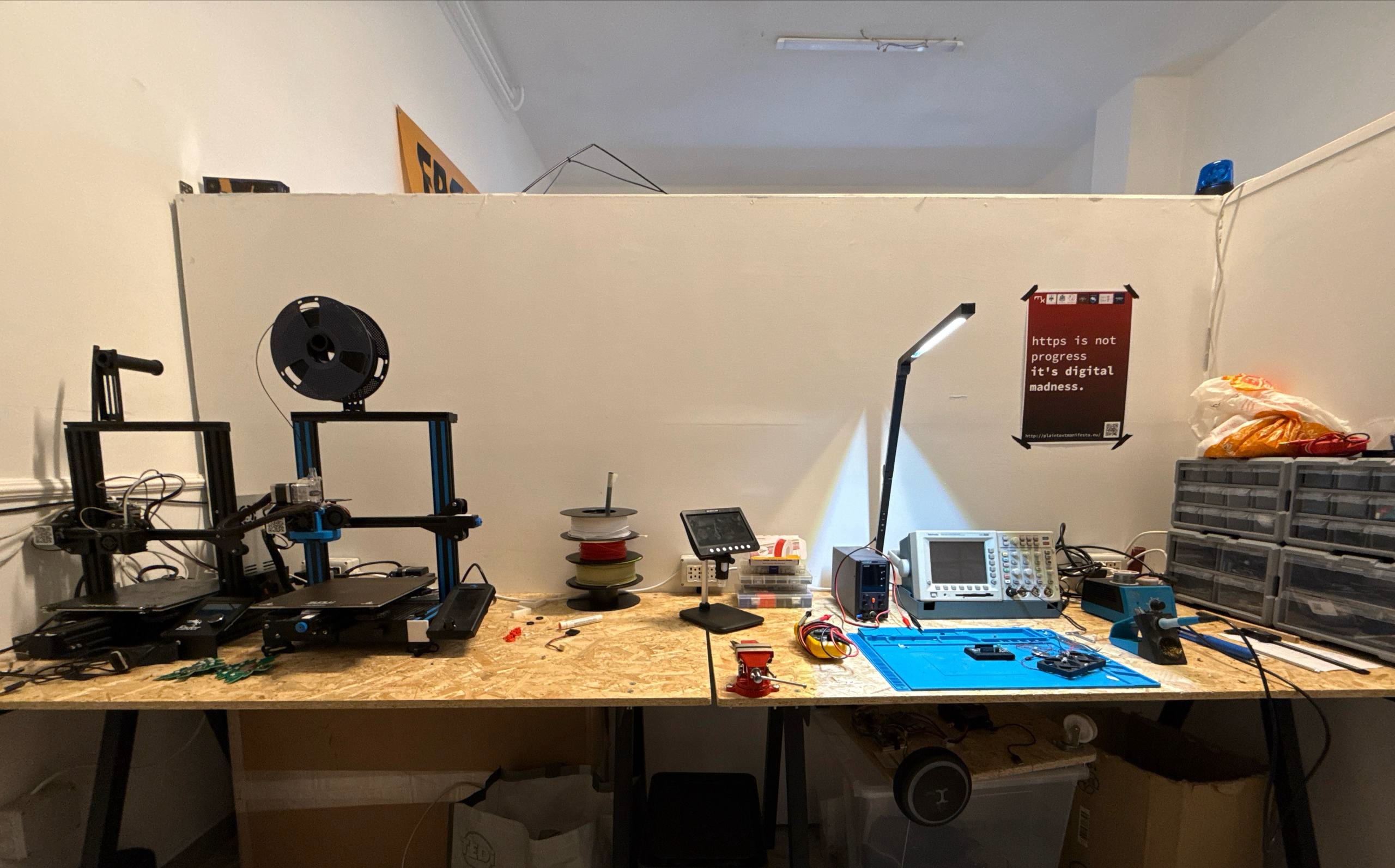 È un posto dove smanettare, rompere cose (e magari aggiustarle), imparare dagli altri e condividere quello che sai. Aperto a tuttə, anche se non hai mai toccato un saldatore.